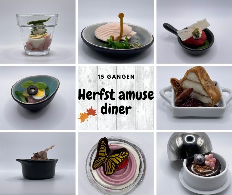 Met het 15-gangen amuse diner van Huischef kunt u genieten van bijzonder gepresenteerde luxe hapjes, die samen een geheel diner vormen. Alleen de warme gerechtjes hebben nog een kleine bereiding nodig.